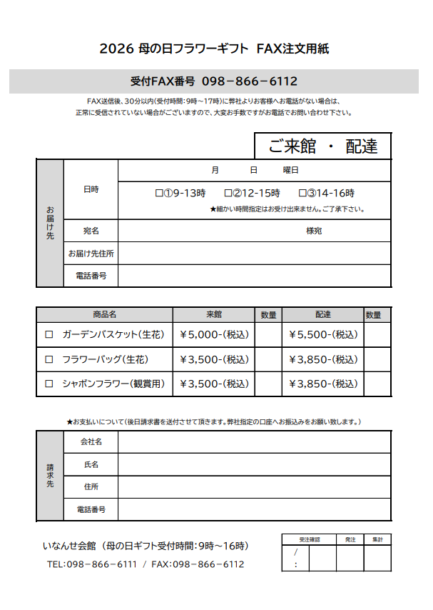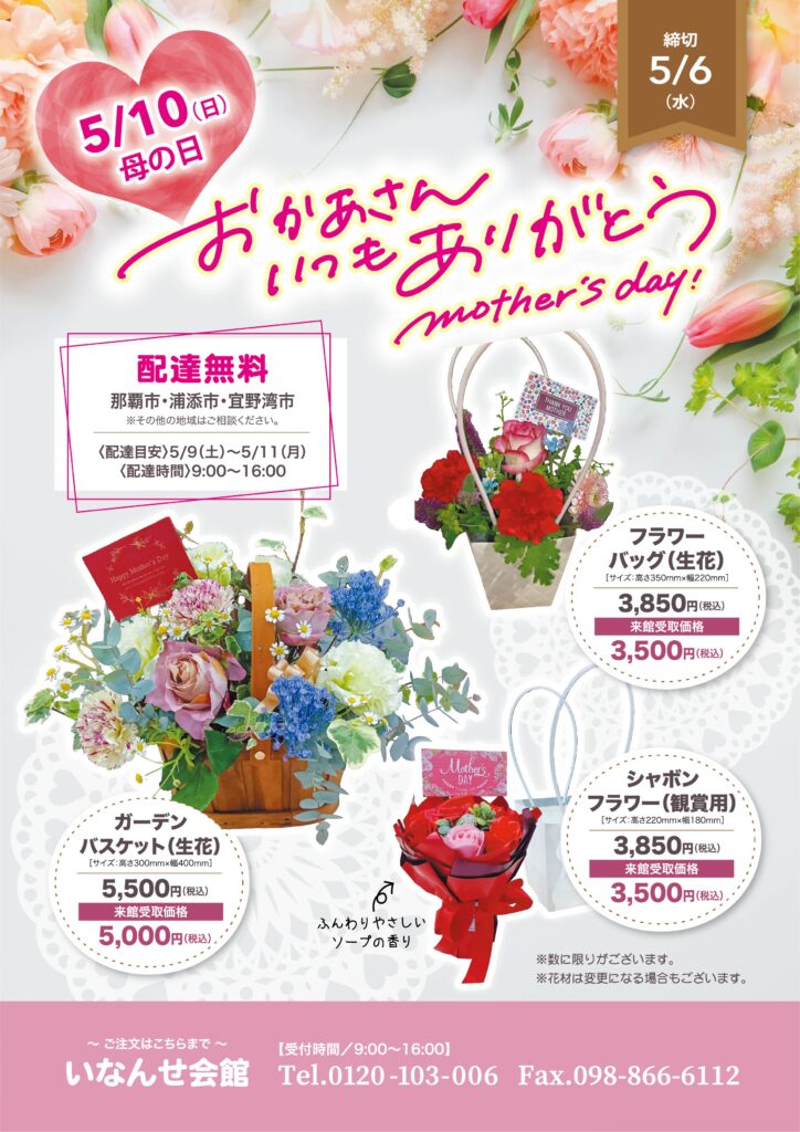いなんせ典礼では、今年も母の日の贈り物をお手伝いいたします。今年は3種類の中からお選びいただけます✨